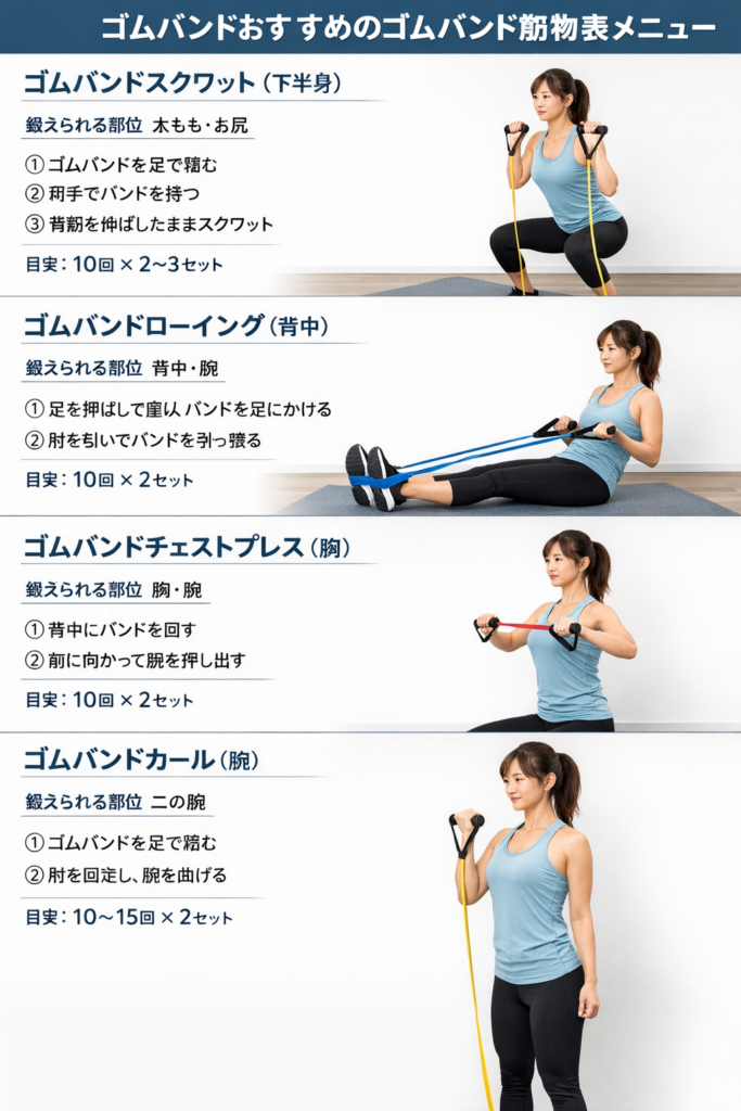 ゴムバンド筋トレの基本・簡単メニュー・おすすめバンドまで、分かりやすく解説します。